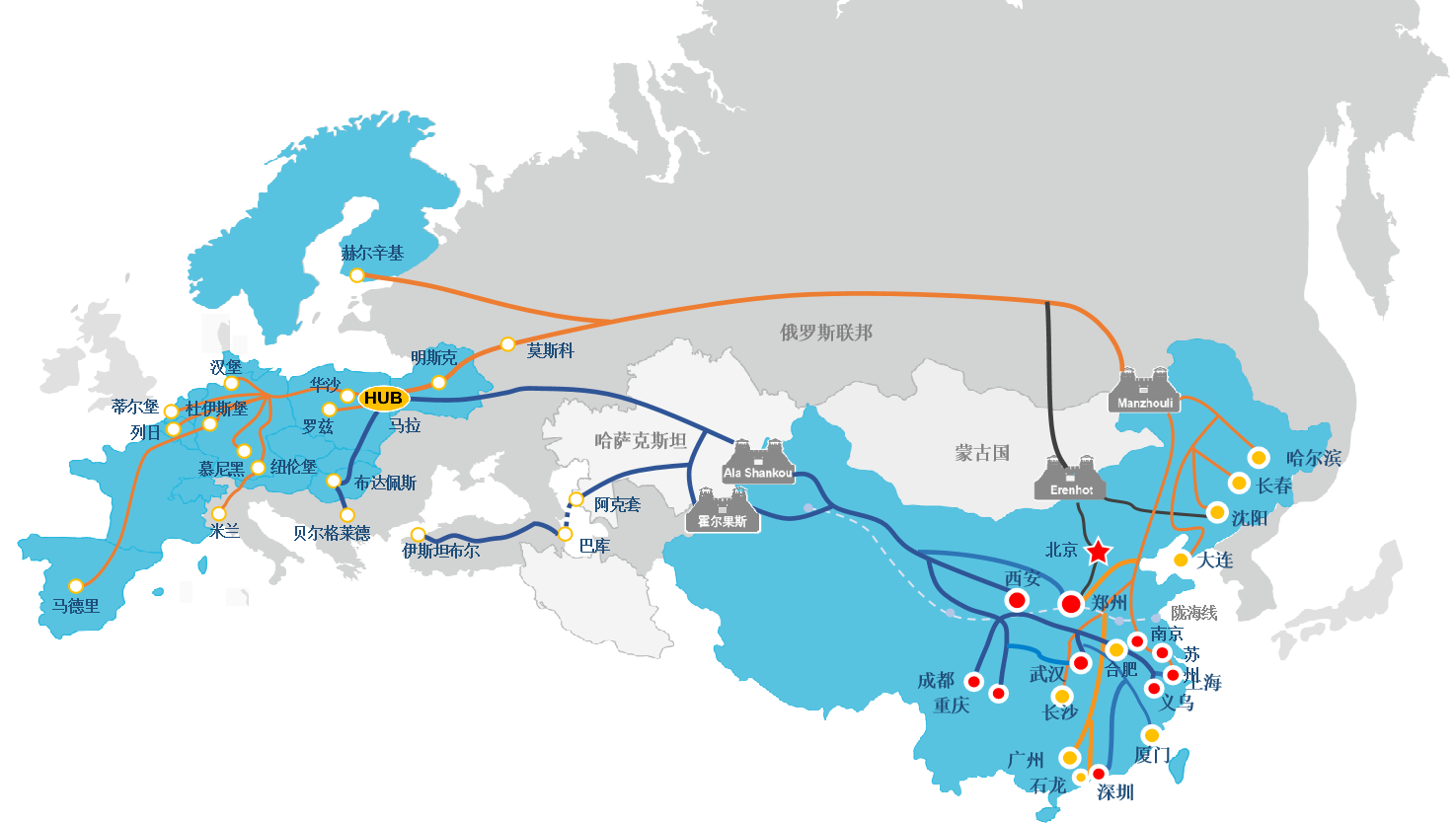 是由中国铁路总公司组织,按照固定车次、线路、班期和全程运行时刻开行,运行于中国与欧洲以及“一带一路”沿线国家间的集装箱等铁路国际联运列车。分类:普通班列和全程时刻表班列。业务范围:整柜+拼箱…